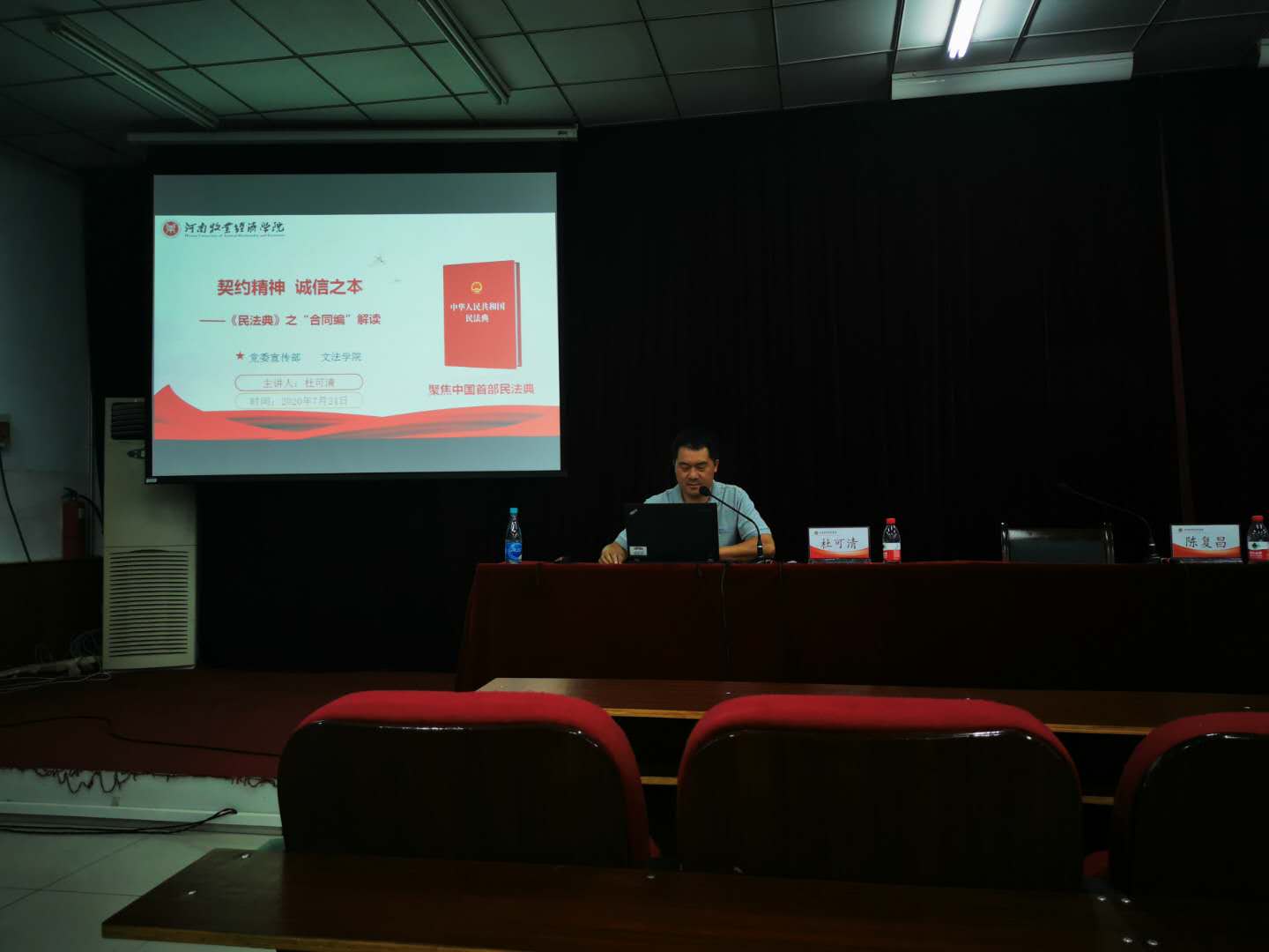 为深入贯彻落实习近平总书记关于广泛开展民法典普法工作的重要指示精神,引导广大干部职工充分认识颁布实施民法典重大意义,根据宣传部“关于开展《中华人民共和国民法典》宣讲活动的通知”要求,7月24日下午3点,Beat365唯一官方网站在英才校区E109开展了《中华人民共和国民法典》(以下简称“民法典”)宣讲活动,此次宣讲活动,学院特别邀请文法学院杜可清老师为Beat365官网全体教师进行现场宣讲。宣讲会由党委书记陈复昌主持。