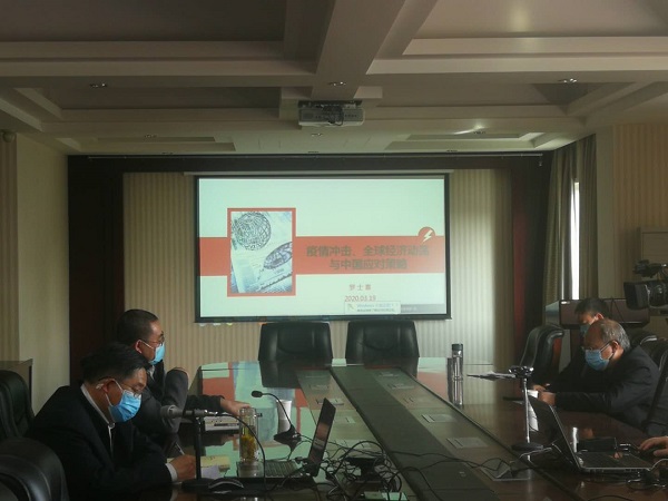 罗校长分析了本次新冠疫情对全球经济造成的影响与冲击,指出这次金融动荡本质上是2008年金融危机的延续,根本原因在于西方社会治理危机的思想与理论存在严重缺陷,解决出路应从马克思主义政治经济学理论中寻找,并提出我国当前应化危为机,充分发挥我国体制优势,积极拥抱以“5G”信息技术为核心的新基建战略,给出了面向河南省应对危机策略建议。最后,罗校长指出目前世界经济动荡,只要我们坚持在中国共产党的领导下,做好自己的事,搞好一带一路,用构建人类命运共同体这个理念来推动世界经济发展,就能实现中华民族伟大复兴。
