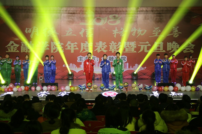 为表彰2017年度取得优异成绩的学生典范和积极进取的集体,激发和调动全院学生在新的一年中的学习积极性、创造性和团结凝聚力,同时为了庆贺即将到来的元旦佳节,金融学院于12月25日晚19点在大礼堂召开了年度表彰大会暨元旦晚会。金融学院领导班子成员及部分老师参加了此次晚会。