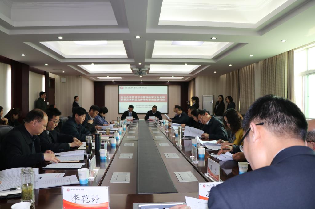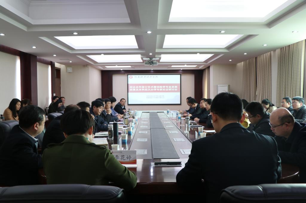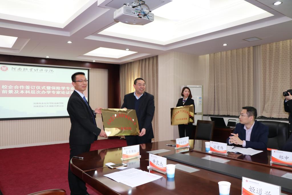 3月29日上午,由河南星原保险汽车代理有限公司与金融学院共同主办的校企合作签订仪式暨保险专业发展研讨会在英才校区行政楼五楼会议室举行。河南省保险中介协会副秘书长李晨阳、河南省保险行业资深专家牛新中及浙商财险、中华联合、平安财险、大地财险、安诚财险、中国人寿财险、弘康人寿、太平洋保险、保险公司河南省公司副总等嘉宾与会。河南牧业经济学院副院长许圣道、北林校区管委会主任杨宝进、英才校区管委会主任宿金勇、招生就业处处长卢有峰、实践教学设备管理处处长赵敏、教务处副处长兼高教研究所所长陈复昌、金融学院总支书记胡红林以及金融学院部分教师参加了本次会议。
