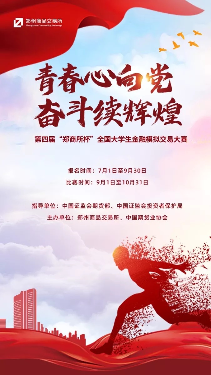 为深入贯彻落实党的十九大和第五次全国金融工作会议精神,落实证监会与教育部联合发布的《关于加强证券期货知识普及教育的合作备忘录》部署,做好期货知识普及工作,适应新形势下期货市场发展对人才的需求,在证监会期货部、投保局指导下,郑州商品交易所(以下简称郑商所)联合中国期货业协会(以下简称中期协)举办第四届“郑商所杯”全国大学生金融模拟交易大赛(以下简称“郑商所杯”)。