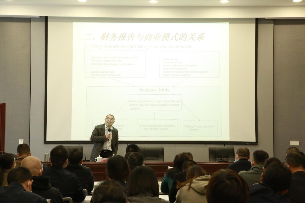 黄良杰教授讲学题目为《财务会计报告:数字化的商业故事》,黄教授从财务会计报告本质入手,结合多年实践经验,全面系统地讲解了如何读懂一份财务会计报告,如何理解会计政策的弹性对对会计信息质量的影响,如何影响到财务会计报告使用人的决策判断,并提出了防范融资担保风险风险建议。