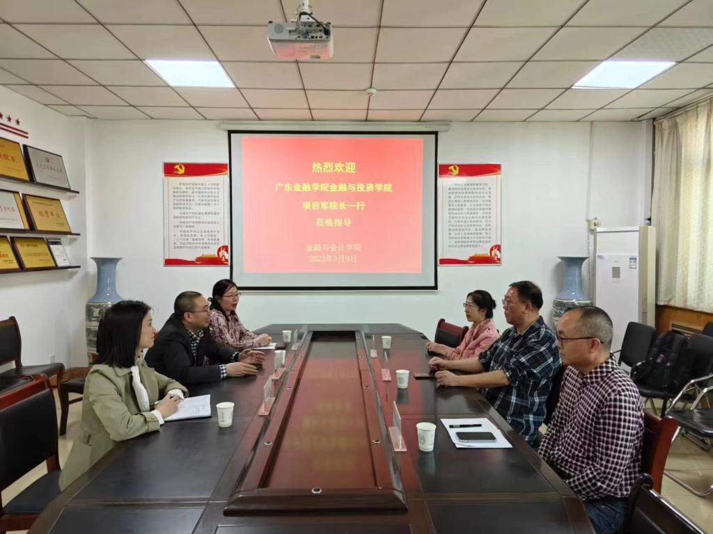 3月9日下午,广东金融学院金融与投资学院项后军院长携刘昊虹副院长、孙进军副院长到Beat365唯一官方网站进行研讨交流。