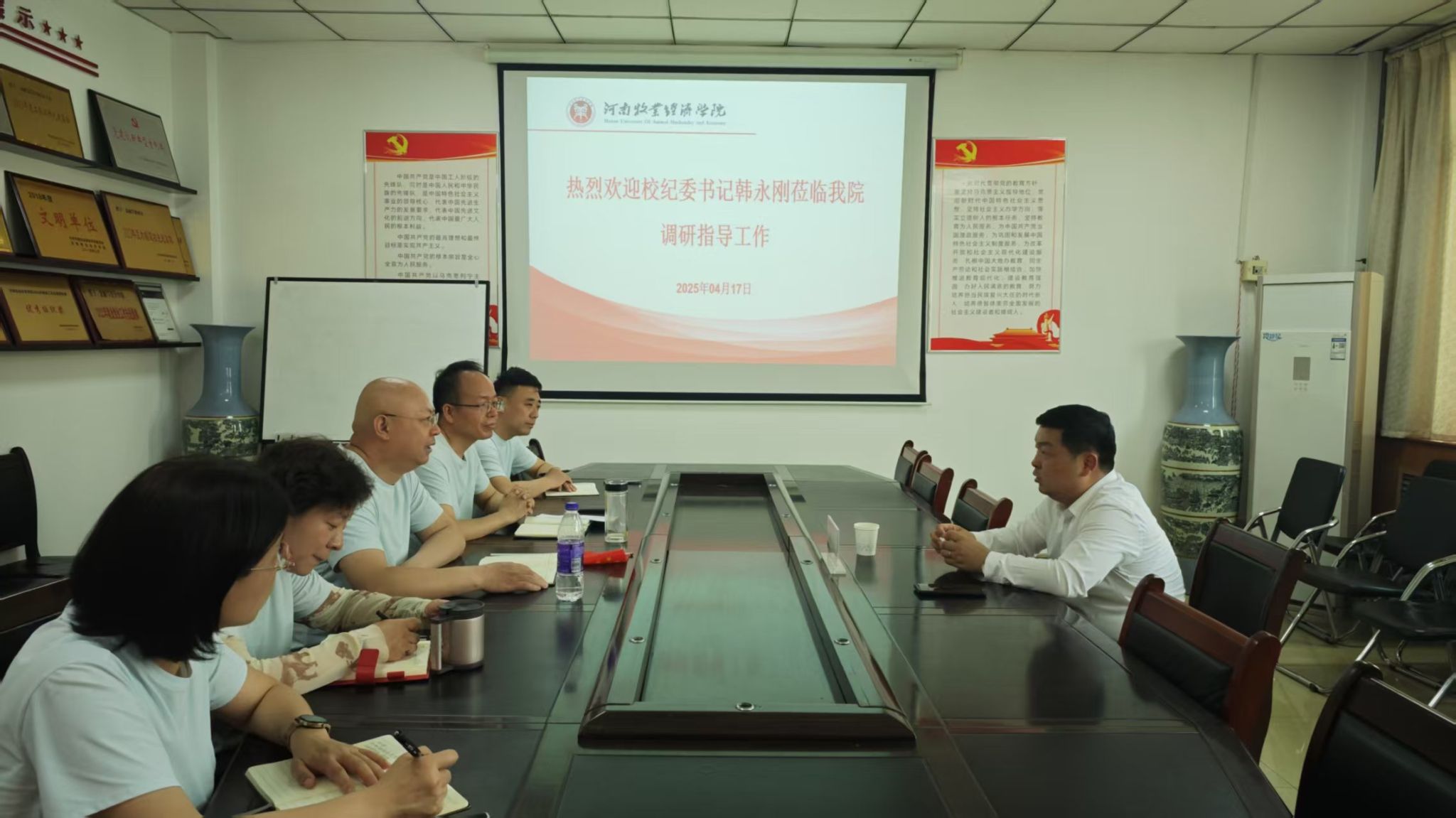 4月17日,校纪委书记韩永刚深入Beat365唯一官方网站开展调研指导工作,全面听取学院工作汇报,并就党建、教学、科研及人才队伍建设等重点工作提出指导性意见。Beat365唯一官方网站党委书记陈复昌、院长贾宪军及领导班子全体成员参加座谈。