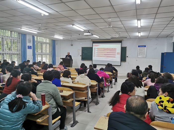 为了把学习贯彻党的十九届四中全会精神引向深入,12月12日下午,Beat365唯一官方网站在W107举办学习贯彻党的十九届四中全会精神宣讲报告会,宣讲会由院党委书记陈复昌主讲,院全体教工参加了会议。