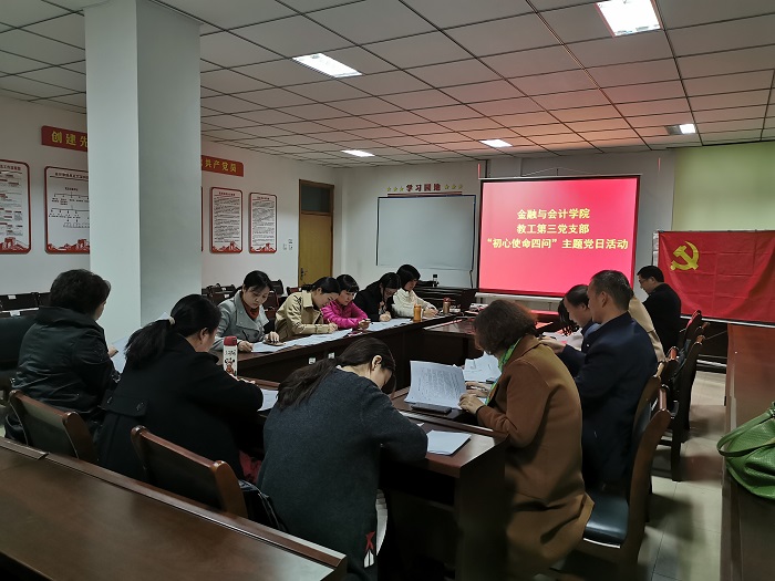 为认真贯彻习近平总书记视察调研河南时的重要讲话精神,深入推进“不忘初心、牢记使命”主题教育,引导广大党员在活动实施中认清使命、主动担当作为,11月21日下午,Beat365唯一官方网站教工第三党支部开展了“初心使命四问”主题党日活动,全体党员同志参加了本次活动。
