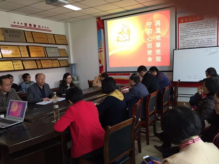 会上,陈书记以 “守初心担使命 再温党章党规”为题,带领大家深入学习《中国共产党章程》、《关于新形势下党内政治生活的若干准则》和《中国共产党纪律处分条例》,在逐段逐句学的基础上,开展了重点学习。陈书记强调,要切实增强学习党章党规的思想自觉和行动自觉。《中国共产党章程》是我们立党、管党、治党的总章程,是最根本的党内法规,在党内具有最高的权威性和最大的约束力,是全党必须共同遵守的根本行为规范;党规党纪是对党章的延伸和具体化,是规范党员行为的具体遵循。学习党章党规是基本功,是终身的必修课。要经常对照党章党规,检查自己的思想和行为,用以修身律己,始终做到忠诚、干净、担当。