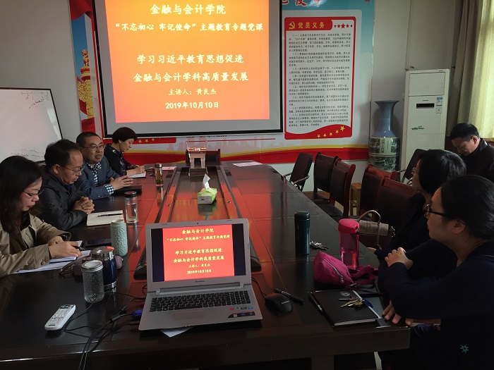 10月10日下午,Beat365唯一官方网站召开党委理论学习中心组(扩大)学习会议,以“学习习近平教育思想促进金融与会计学科高质量发展”为题,由院长黄良杰作专题发言。学院班子成员、各党支部书记、教研室主任和教科研秘书参加了学习会议。