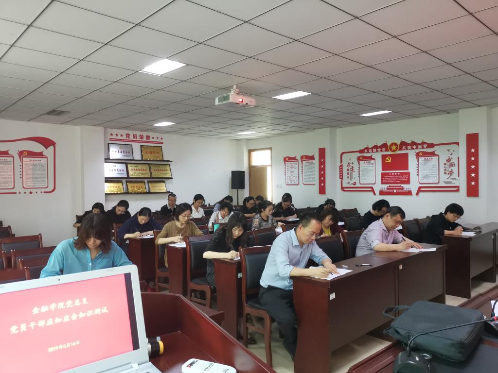 为深入学习宣传贯彻习近平新时代中国特色社会主义思想和党的十九大精神,不断提升党员干部政治理论素养和学习能力,按照学校《关于组织党员干部应知应会知识考试的通知》要求,金融学院党总支于5月16日下午2:30,在教学楼227会议室举办了党员干部应知应会知识测试。