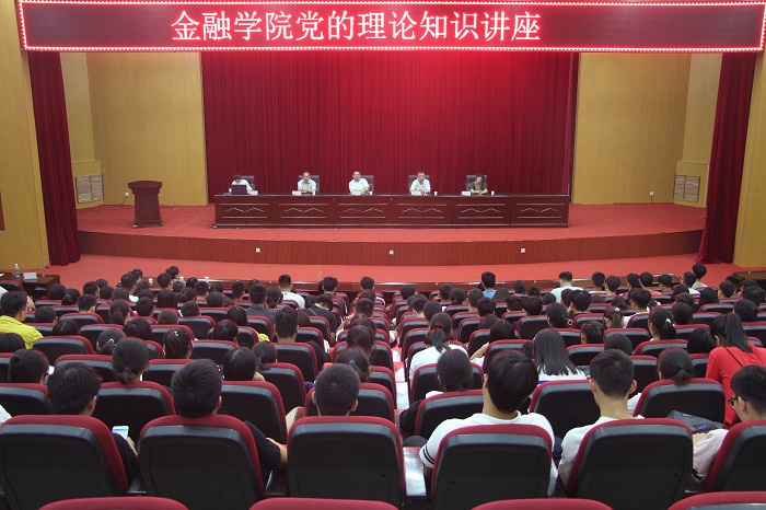 为增强大学生对党的理论知识的理解,深刻领悟党的十九大精神,进一步加强学生自身品德建设,金融学院于9月8日,在校学术报告厅举办了“党的理论知识”讲座。金融学院党总支书记胡红林、院长黄良杰、党总支副书记贾宪军、副院长王培玲,团总支书记李特及全体辅导员老师参加了此次讲座。