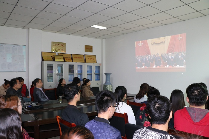 10月18日上午9时,中国共产党第十九次全国代表大会在北京人民大会堂开幕。金融学院党总支书记胡红林、党总支副书记兼副院长贾宪军带领部分师生在院会议室共同收看大会实况,认真聆听习近平总书记的工作报告,畅谈感受。