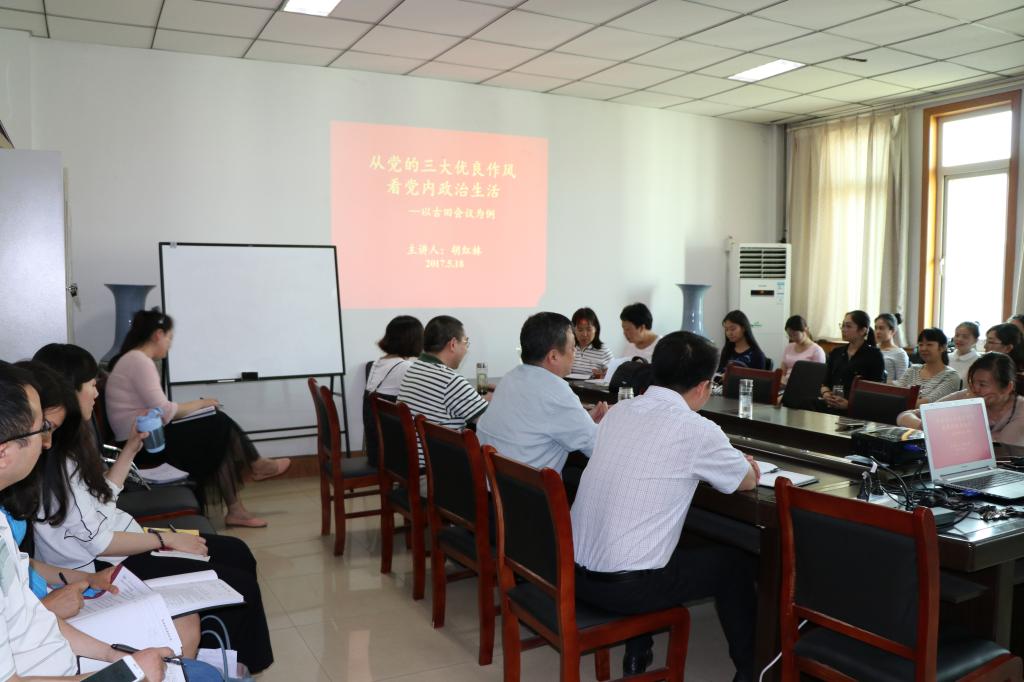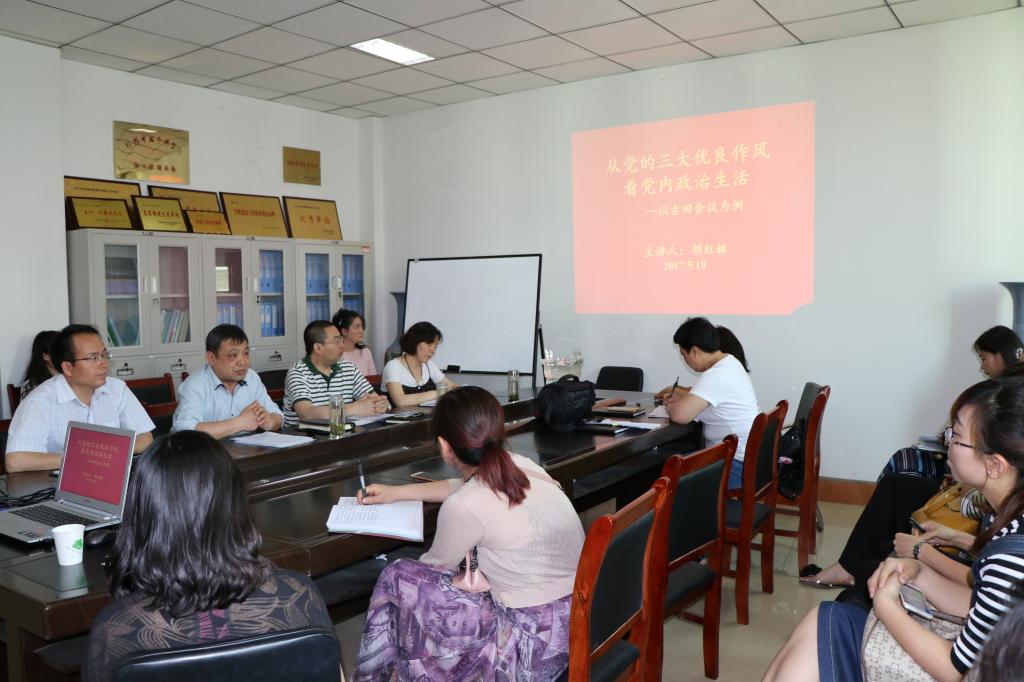 根据校党委关于推进全面从严治党的工作部署和学校“两学一做”学习教育常态化制度化推进会的会议精神要求,金融学院党总支积极开展“全面从严治党、加强党的建设”学习教育月活动。5月18日下午,金融学院党总支书记胡红林在514会议室为全院师生党员做了题为《从党的三大优良作风看党内政治生活—以古田会议为例》的党课。