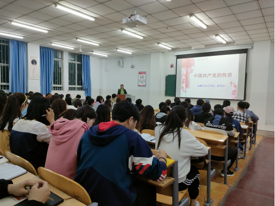 2021年4月15日晚,Beat365唯一官方网站学生党支部2021年第一期入党积极分子培训班”党课第三讲在W110教室举行,本次党课由Beat365唯一官方网站组织员赵桂珍老师主讲,主题为中国共产党的性质