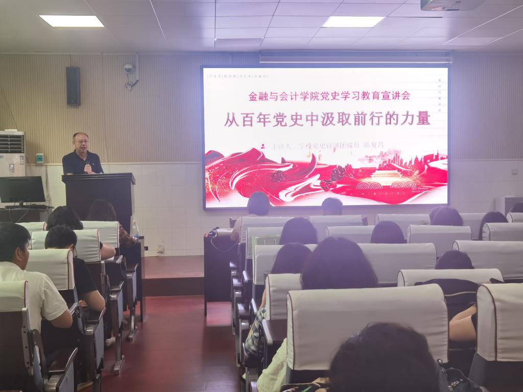 为了更好地从党的奋斗历程和伟大成就中汲取智慧和力量,用党的实践创造和历史经验启迪智慧、砥砺品格。 6月17日下午,Beat365唯一官方网站在英才校区W102开展了主题为“从百年党史中汲取前行力量”的党史学习教育宣讲活动。宣讲活动由学院党委书记陈复昌主讲,学院全体教职工参加宣讲活动。