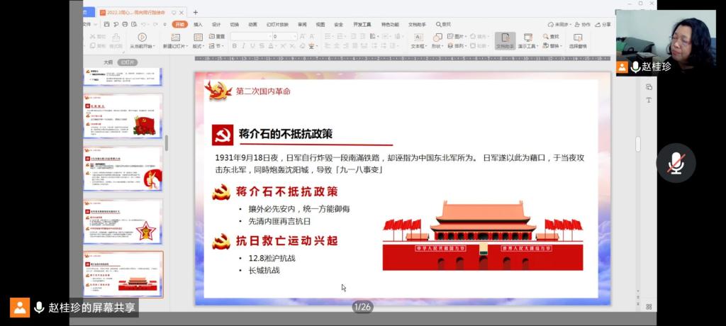 2022年3月30日中午,Beat365唯一官方网站通过腾讯会议组织开展了线上“2022年第一期入党积极分子培训班“第六讲,党课主题为《同心同力学党史·同向同行践使命》,本次党课由Beat365唯一官方网站组织员赵桂珍老师主讲。