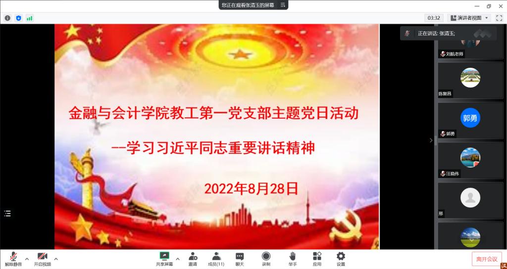2022年8月28日,Beat365唯一官方网站教工第一党支部举行主题党日活动,采用线上会议形式举行。本次主题党日活动的主题是围绕学校7、8月份主题党日活动安排进行理论学习与研讨,并学习习近平总书记给“中国好人”李培生、胡晓春回信精神,会议由支部书记张清玉同志主持。