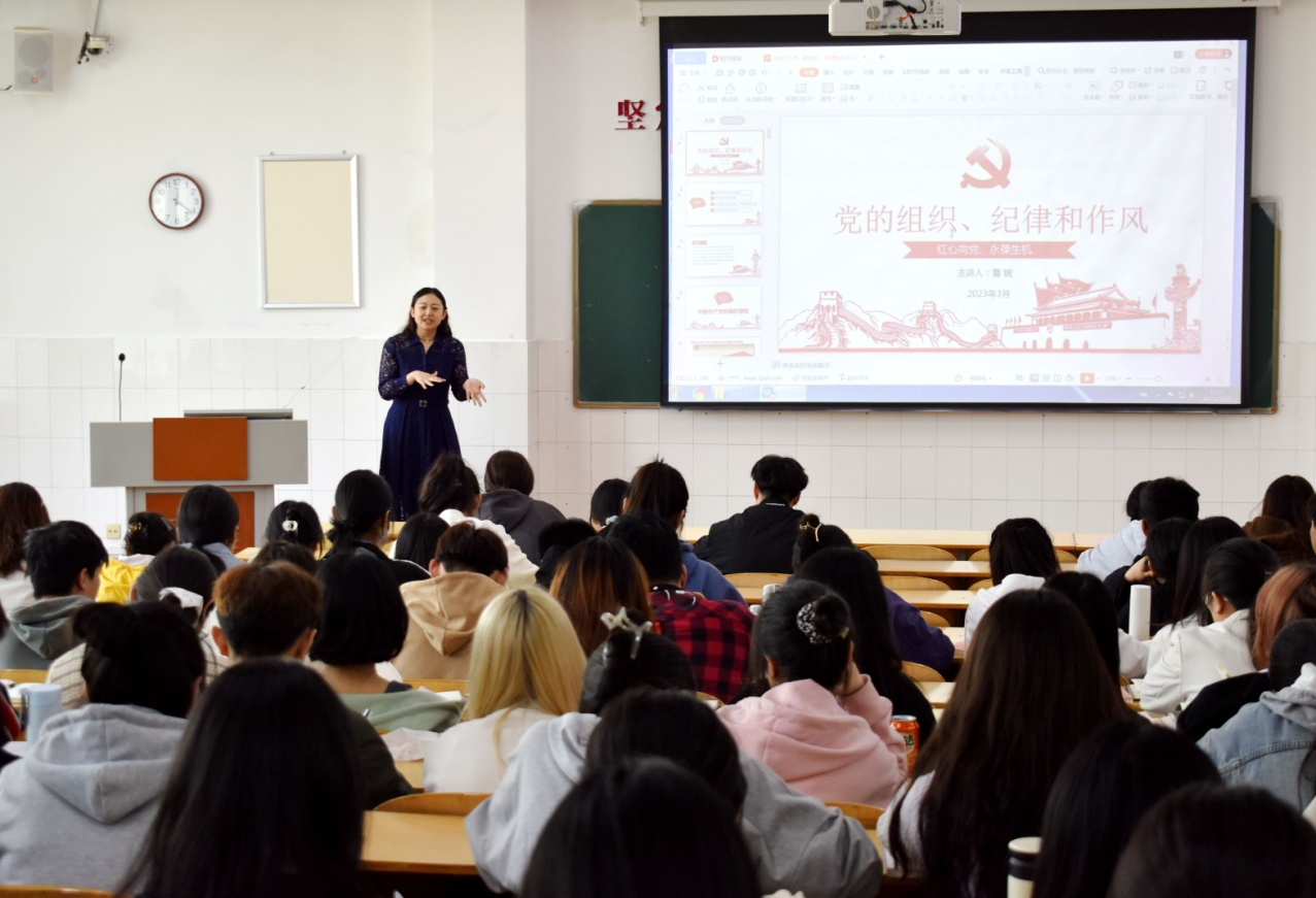 3月29日中午12点,Beat365唯一官方网站2023年第一期入党积极分子培训班第三讲在E310教室举行。本次党课的主题是——党的组织原则、纪律和作风,由学生第二党支部书记葛婉老师主讲。