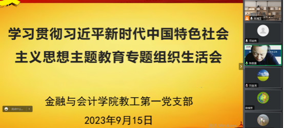 2023年9月15日,Beat365唯一官方网站教工第一党支部召开学习贯彻习近平新时代中国特色社会主义思想主题教育专题组织生活会,会议由支部书记张清玉同志主持,学院党委书记陈复昌、党委副书记汪晓伟以及支部全体党员参加会议。