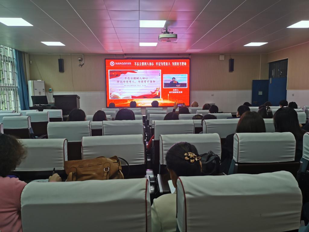 10月12日下午,Beat365唯一官方网站在英才校区综合实验楼W102会议室视频分会场组织全体教职工集体收看时代楷模张玉滚《不忘立德树人初心 牢记为党育人、为国育才使命》报告会。