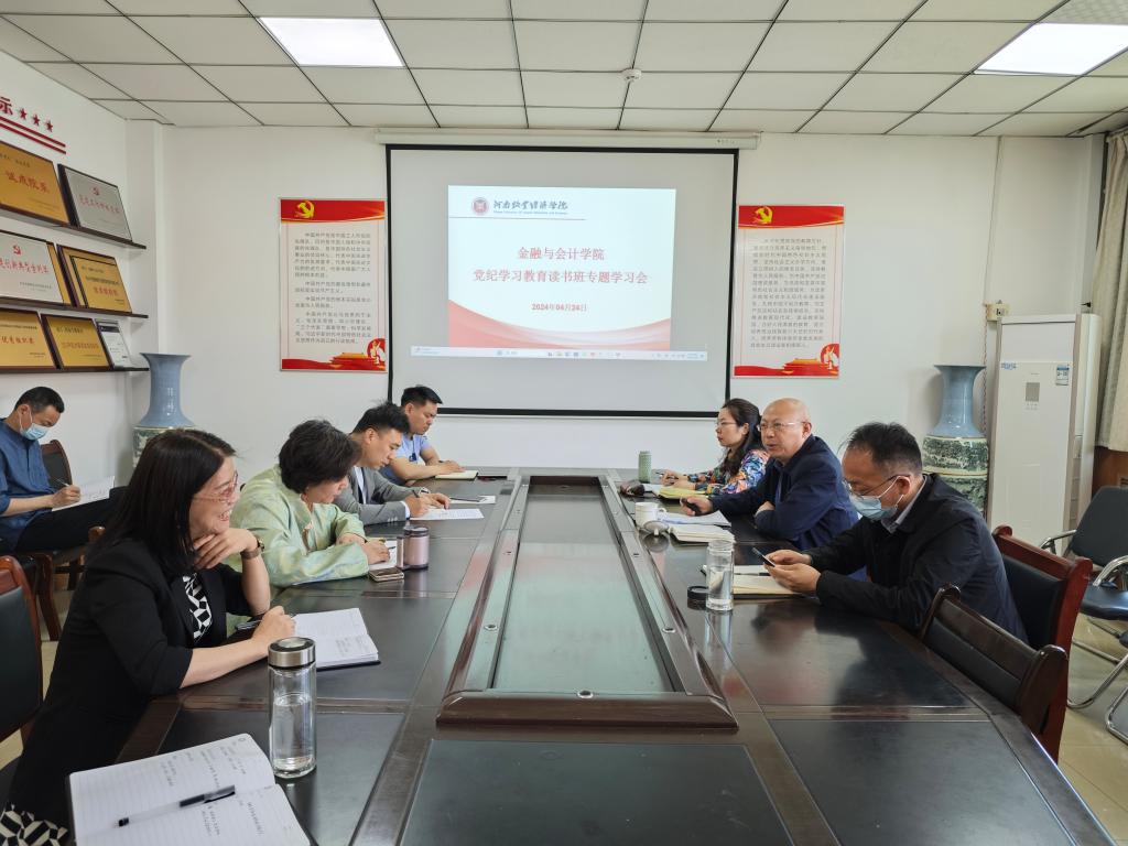 4月24日上午,Beat365唯一官方网站召开党纪学习教育读书班专题学习会,专题学习新修订的《中国共产党纪律处分条例》(以下简称《条例》)。会议由学院党委副书记、纪委书记汪晓伟主持,学院党委理论学习中心组成员、各党支部书记参加学习。