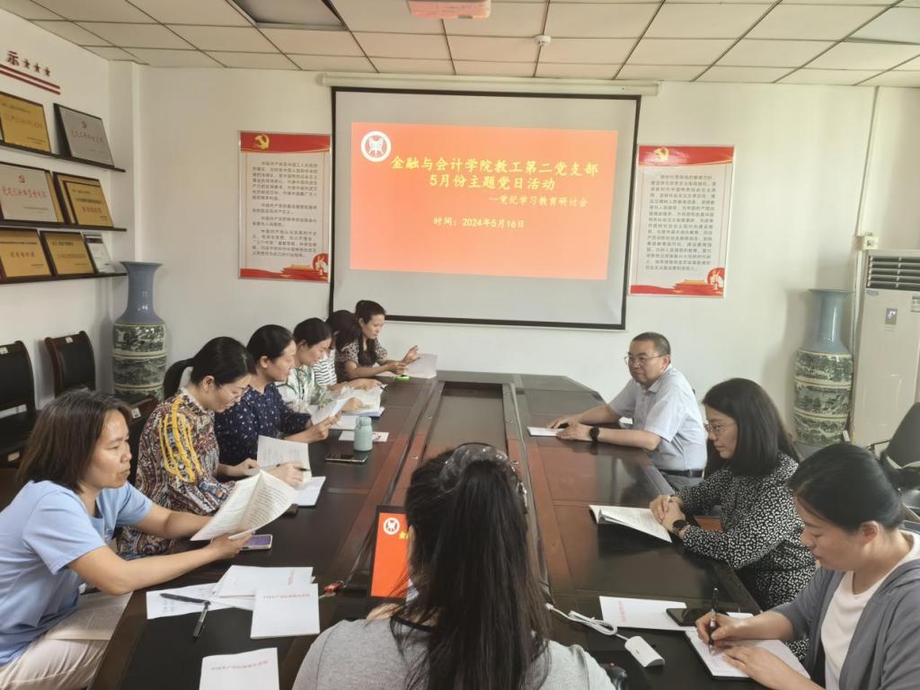 2024年5月17日下午,Beat365唯一官方网站教工第二党支部在英才校区教学办公楼514会议室召开党纪学习教育研讨交流会,副校长黄良杰参加了研讨交流会并对党支部党纪学习教育进行了深入指导,教工第二党支部党员教师参加了会议,会议由教工第二党支部书记宋晓薇主持。