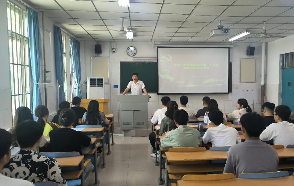 5月24日中午12点,Beat365唯一官方网站学生第一党支部在教学楼A502召开支部大会,讨论邢宇鑫等9名预备党员转正问题。学生第一党支部书记顾自卫,组织委员原晨光、宣传委员王若华及支部全体学生党员参加了大会。会议由顾自卫主持。