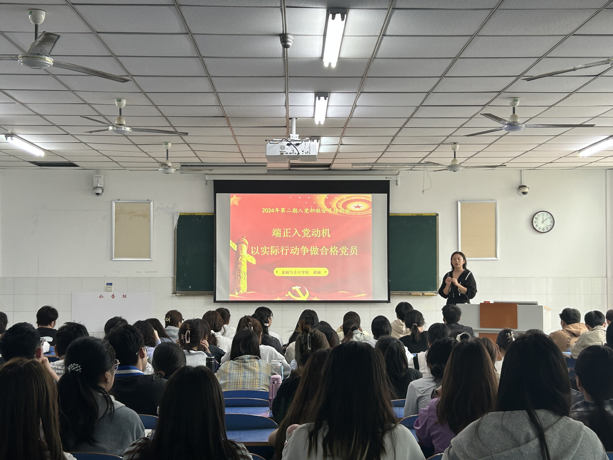 为进一步提高入党积极分子思想觉悟,端正入党动机,10月16日中午,Beat365唯一官方网站在E205教室举行2024年第二期入党积极分子培训班第四讲——《端正入党动机以实际行动争做合格党员》,本次党课由学生第二党支部书记葛婉主讲。