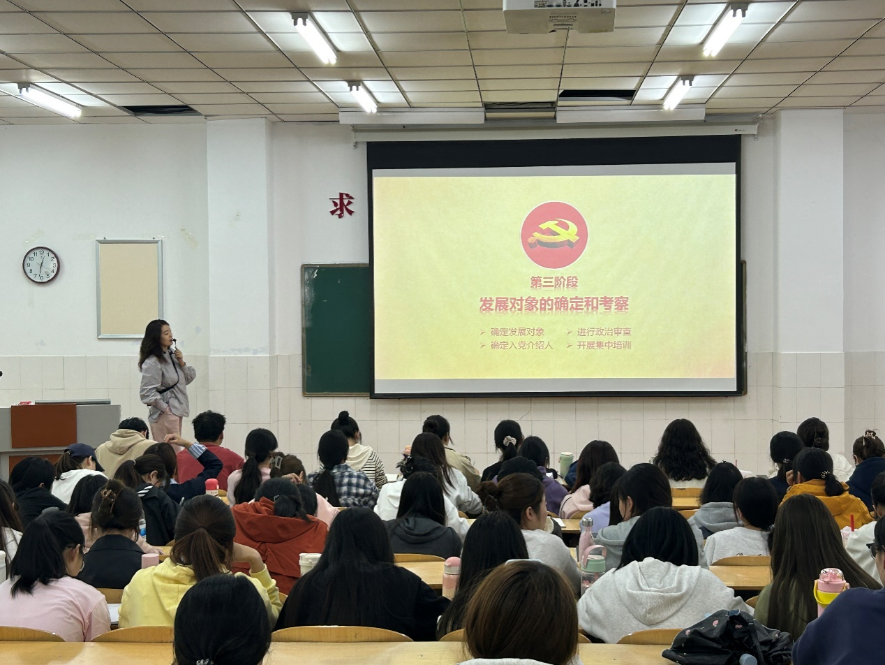 首先,张珂瑜老师从“入党程序及其注意事项”进行了详细讲解,其内容包括申请入党的条件、入党积极分子的确定和培养、发展对象的确定和考察、预备党员的接收、预备党员的教育考察和转正。接着,张珂瑜老师特别强调了入党申请书、入党志愿书、思想汇报等材料的写作注意事项,并提到在入党过程中,入党申请人应始终保持真诚、坦率的态度,如实向党组织汇报自己的思想、学习和工作情况。她强调,入党积极分子应清楚并掌握入党条件和发展党员标准,时刻以高标准来严格要求自己,遵守校规校纪,提高思想觉悟,端正入党动机。