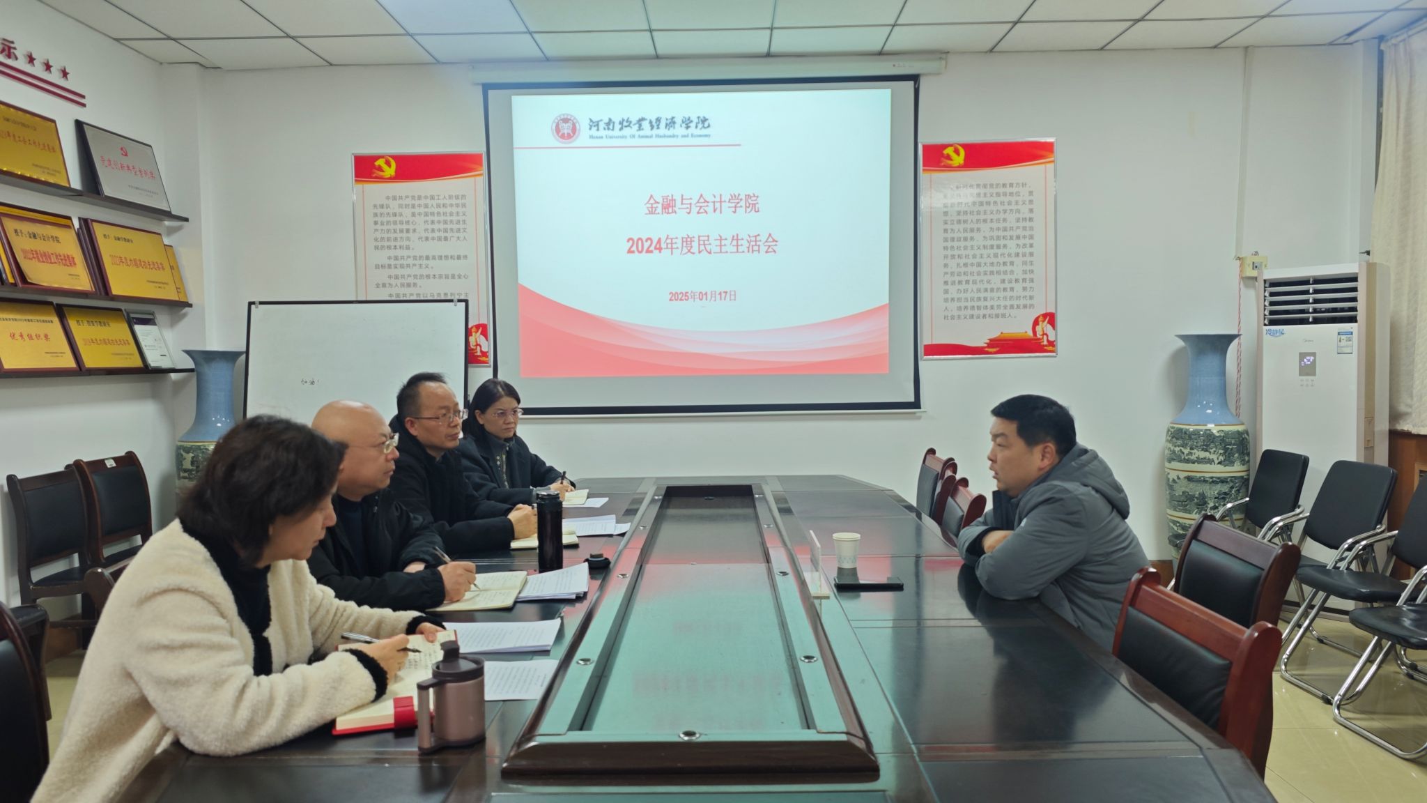 韩书记对本次民主生活会进行了充分指导,在总结时充分肯定了这次会议取得的效果,认为本次民主生活会前期准备充分,会议程序规范,认真开展批评与自我批评,查摆问题准确全面,思想认识深刻到位,整改措施合理可行,相互批评有辣味。这场民主生活会既红脸出汗,又增进了团结,达到了预期目的。会上,韩书记还就学院党建、人才工作、教育教学、科研、社会服务等工作进行了详细指导,并要求要安排好假期工作,主动谋划好2025年的各项工作,定目标、找抓手、压担子,一步一个脚印开展好各项工作。