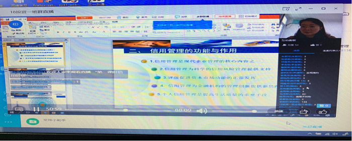 信用管理教研室刘玉红老师采用超星通自建课程上传教学基础资料,利用钉钉直播进行课程讲解《信用管理学》课程。