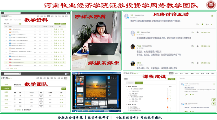 投资学教研室承担的证券投资学课程,群力群策和集思广益下,共同建设证券投资学课程,打造“人人皆学、处处能学、时时可学”的学习氛围。