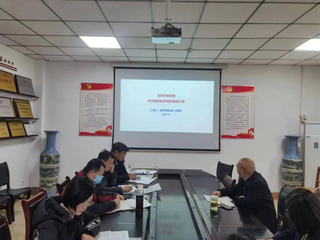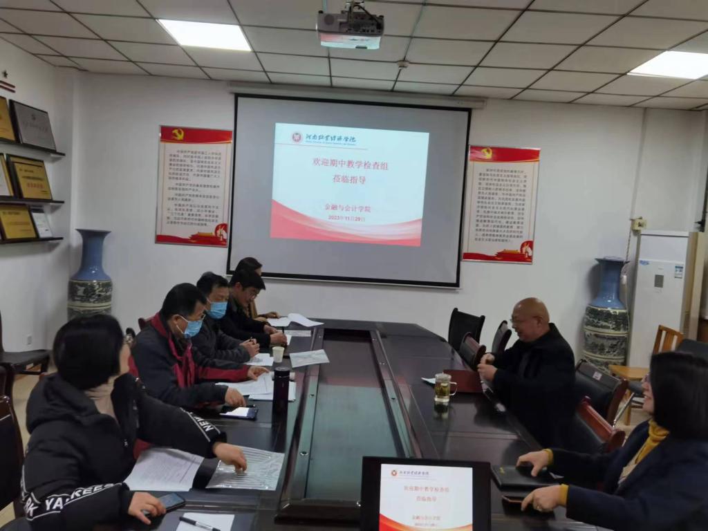 检查汇报会上,党委书记陈复昌重点对学院理论教学、实践教学及其教学评价等教学运行;专业、课程与教材、教学资源、师资队伍建设等教学建设;学院日常教学管理、教研室教研活动、师生座谈会和教学档案管理等教学组织与管理等几个方面情况进行了总结汇报。财务管理教研室主任苗霞博士和投资学教研室主任王豪杰博士进行了优秀基层教学组织的汇报。
