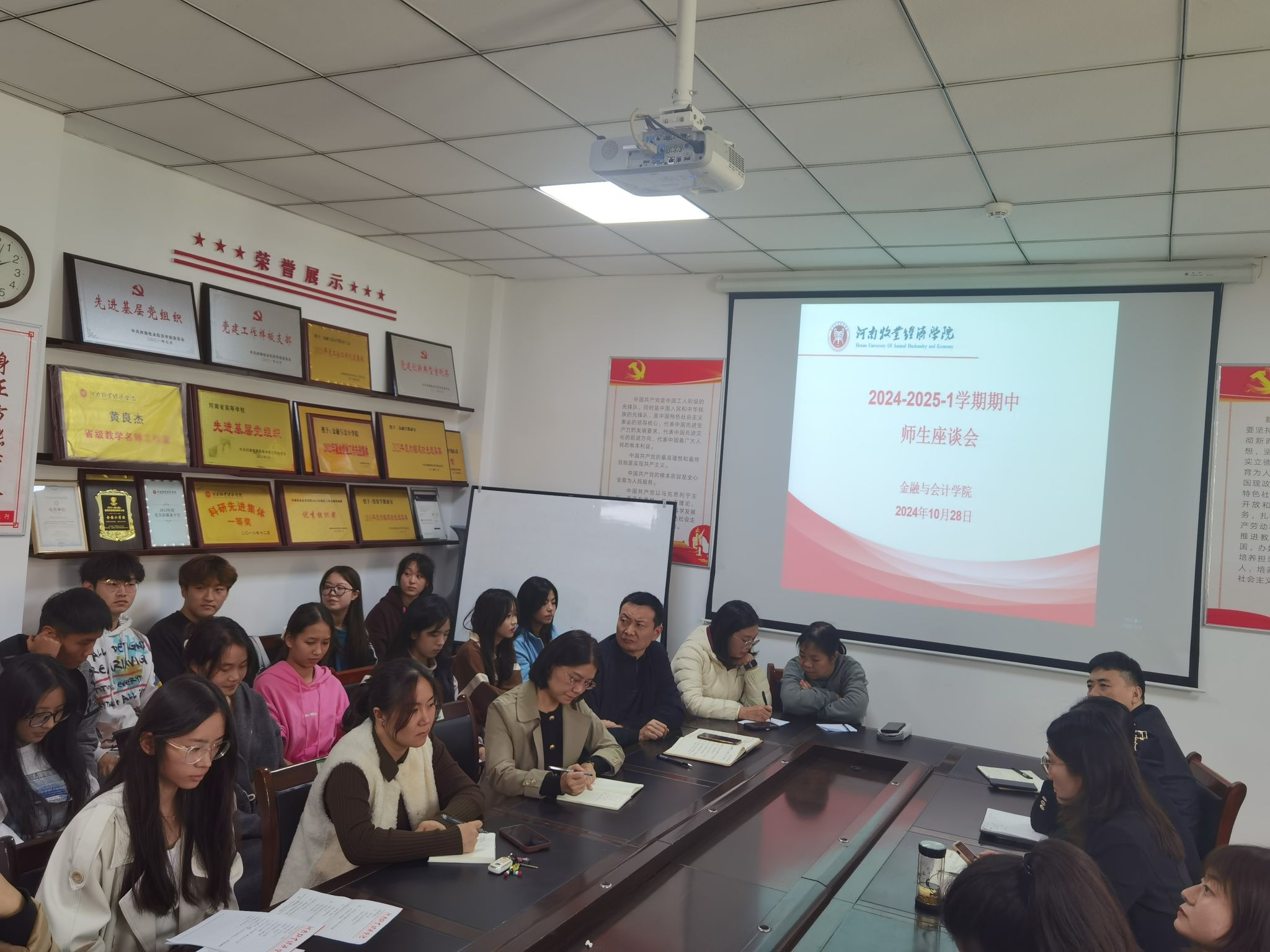 崔海红副院长首先介绍了本次学生座谈会的目的,希望同学们对教学运行、教师教学、学生学习与生活等方面提出意见反馈和建议。参会的各班学委提前汇总了各班同学意见、建议,现场针对课程安排、教师教学方式、学生课堂表现以及教室设备等情况进行了踊跃发言。