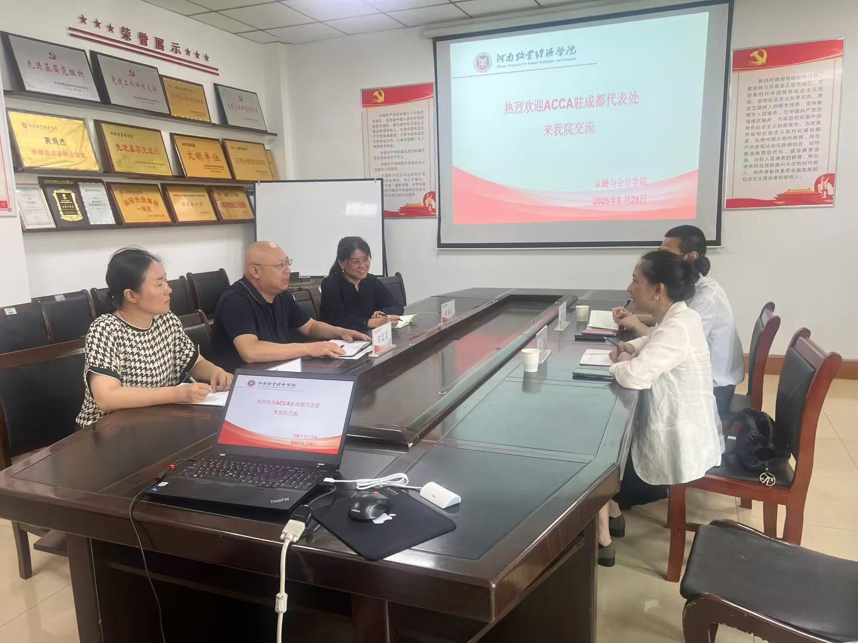 2025年5月28日,ACCA驻成都代表处客户关系经理王玮和张玉平Beat365官网交流座谈。Beat365唯一官方网站书记陈复昌、副院长崔海红以及ACCA专业负责人李敏敏老师参加交流活动。