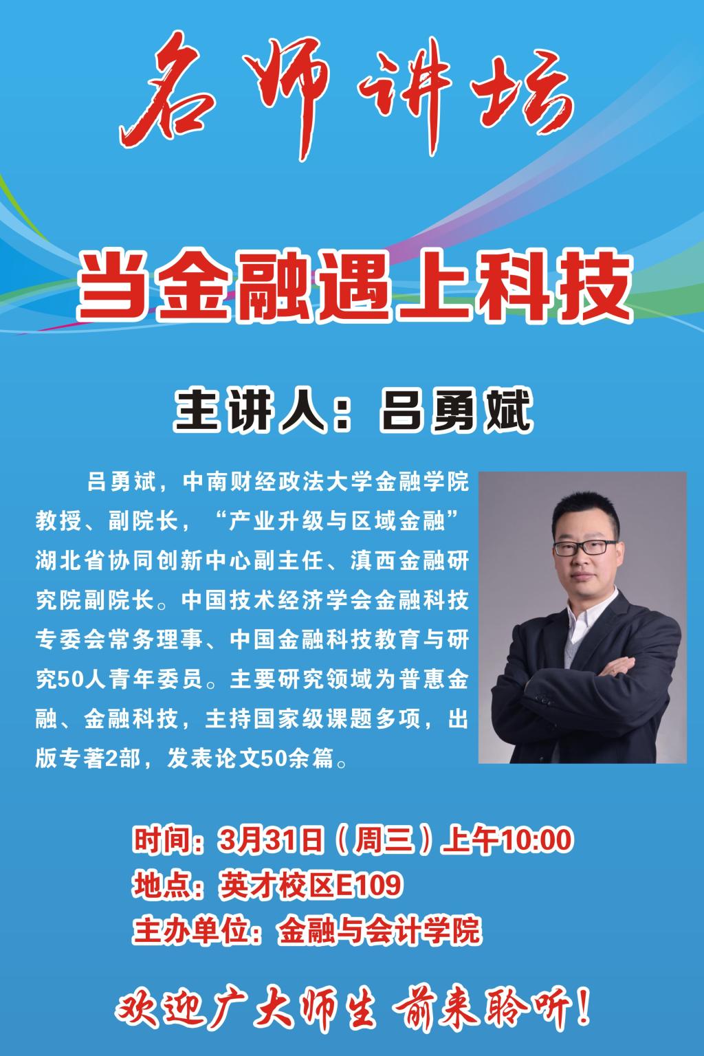 名师讲坛海报——当金融遇上科技