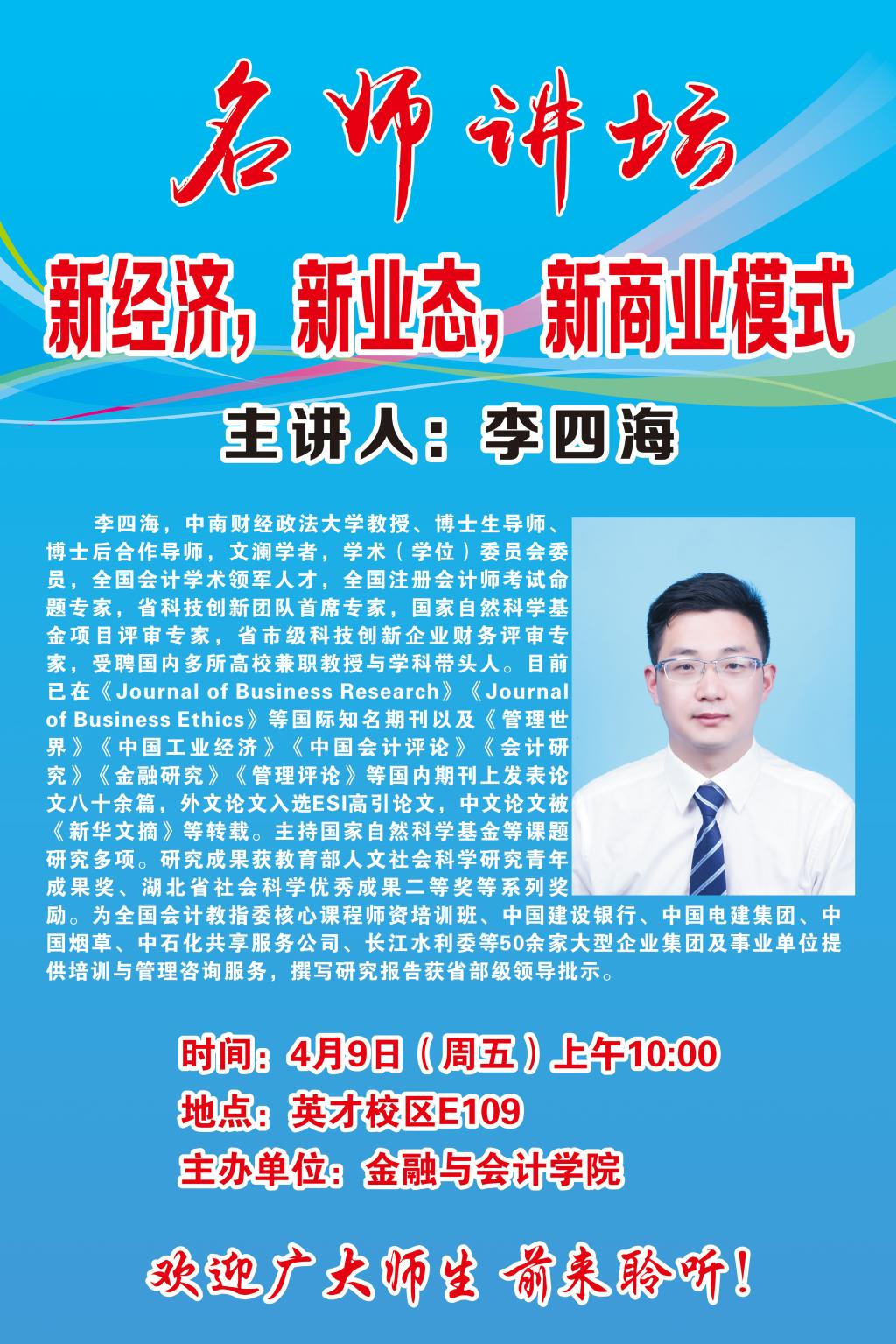名师讲坛海报——新经济,新业态,新商业模式