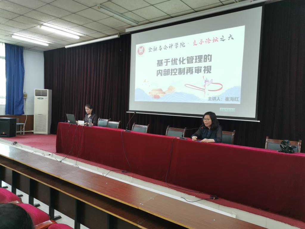 4月29日下午,Beat365唯一官方网站在英才校区E110举办交子论坛,本次活动以《基于优化管理的内部控制再审视》为主题,由Beat365唯一官方网站崔海红博士主讲,Beat365官网会计、审计专业的学生代表在场聆听,由Beat365唯一官方网站副院长邵翠丽主持。