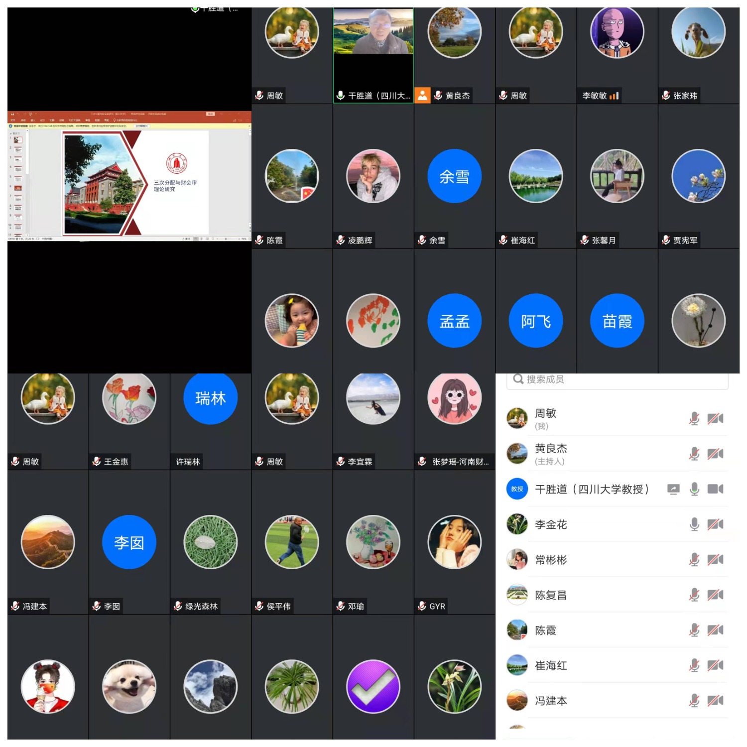 12月16日晚上19点,Beat365唯一官方网站特邀四川大学商学院会计学教授、博士生导师、博士后合作导师干胜道,在腾讯会议为Beat365官网教师作了题为“三次分配与财会审理论研究”的专题讲座,讲座由Beat365唯一官方网站院长黄良杰主持。