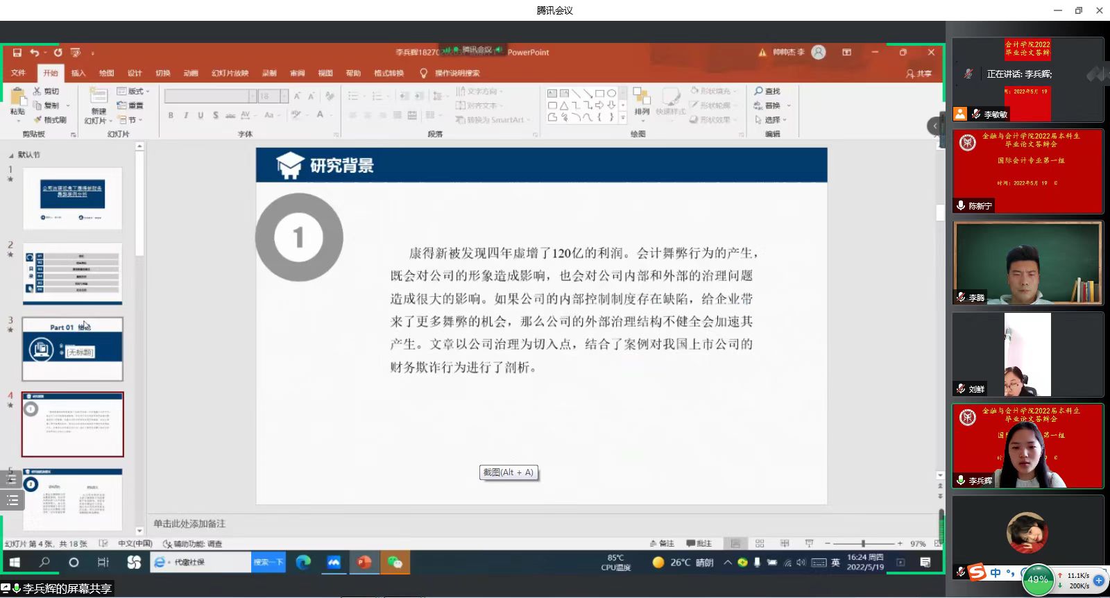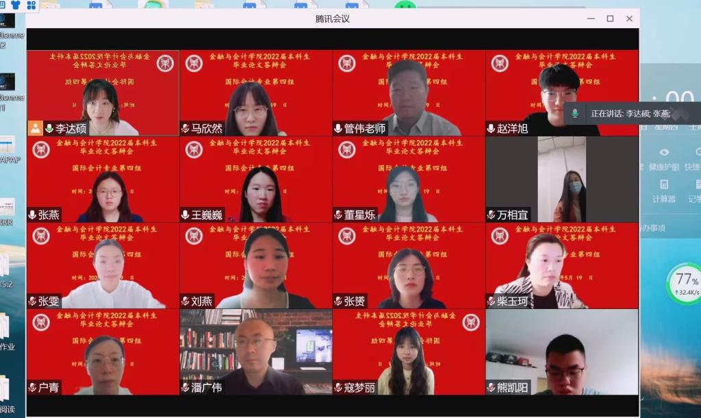 毕业论文工作是教学工作的重要组成部分,考虑到疫情影响,综合学院文件指导意见,在前期论文指导的基础上,国际会计和CIMA专业2022届毕业答辩采取线上腾讯会议举行。