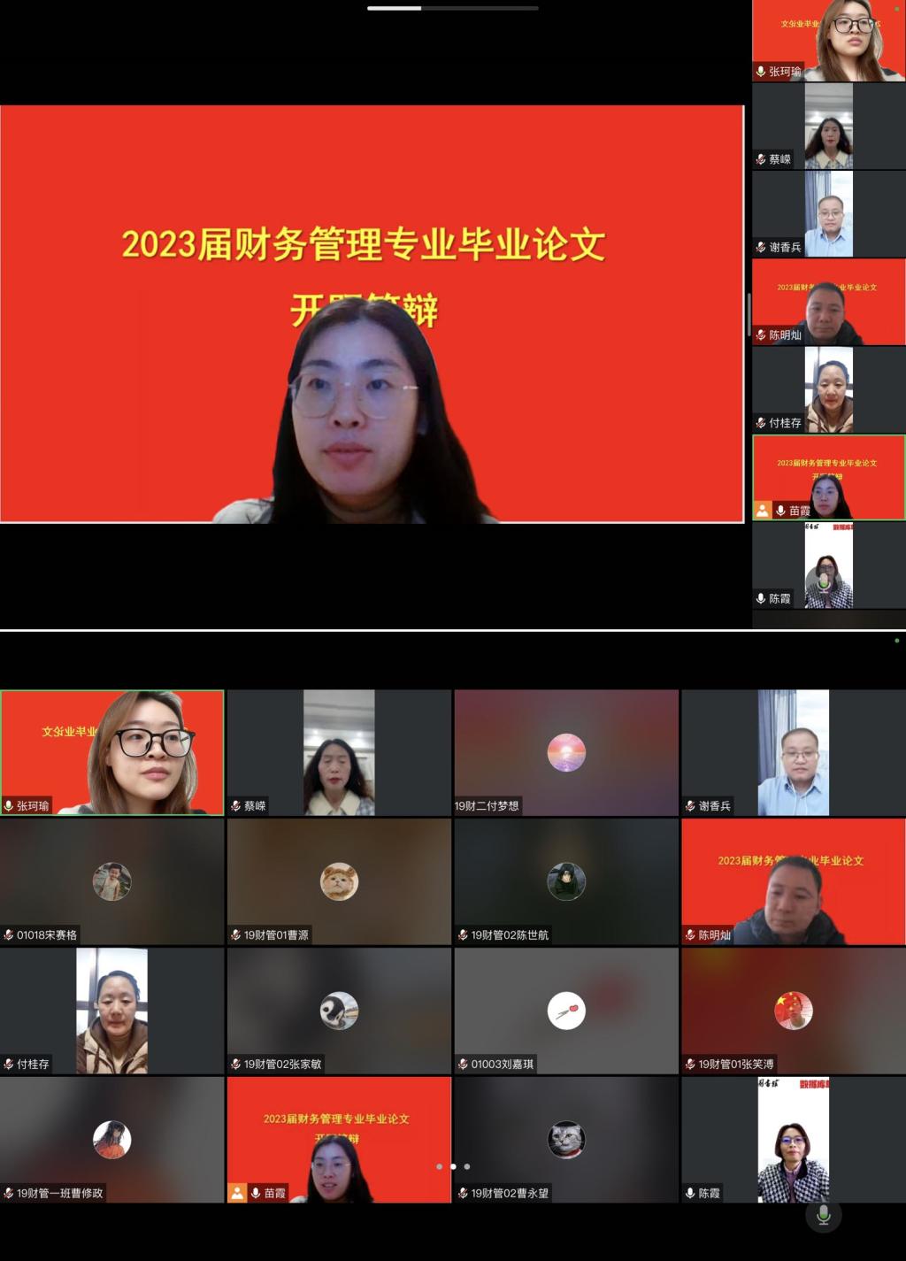2022年11月19日,Beat365唯一官方网站财务管理专业2023届全体师生齐聚云端,开展本科生毕业论文开题答辩会。