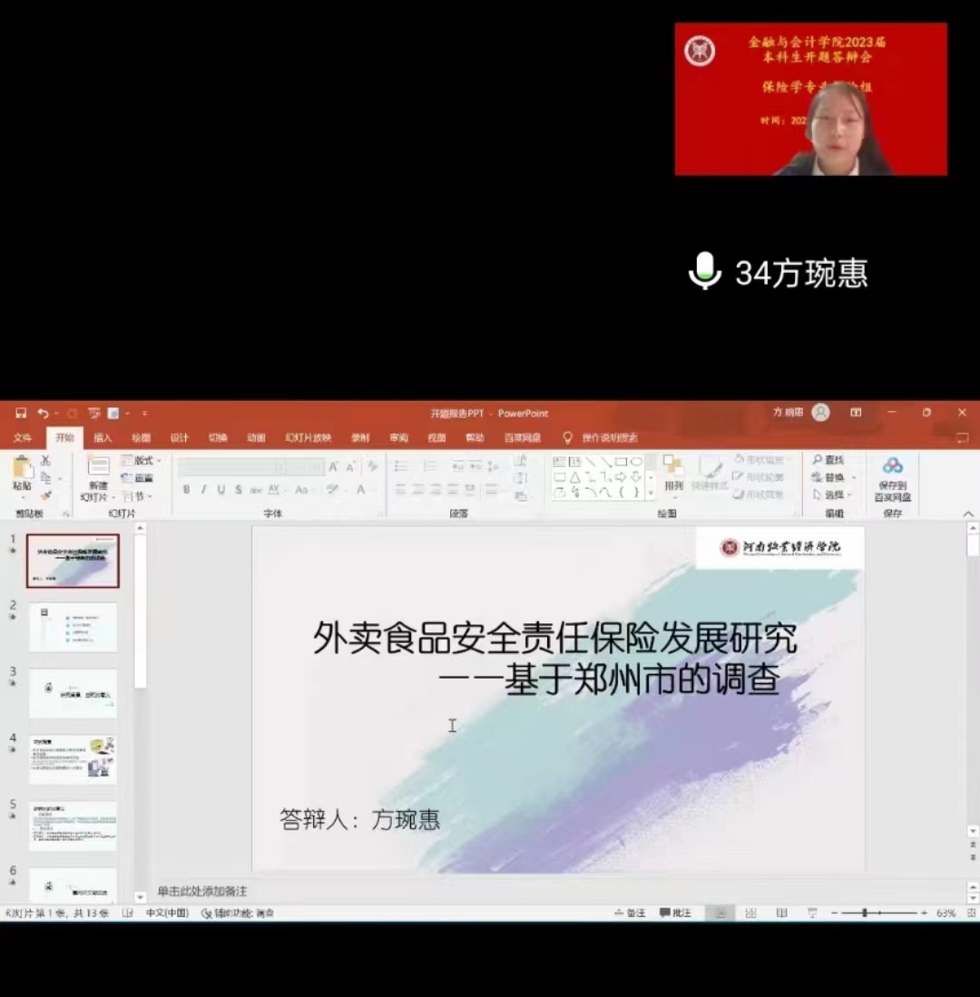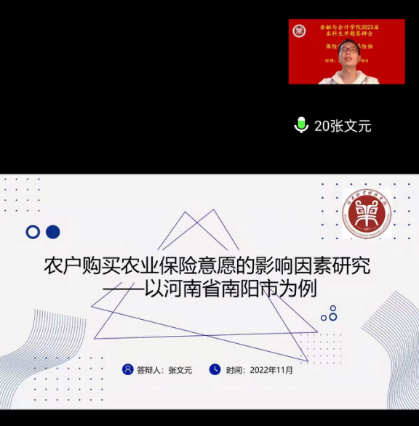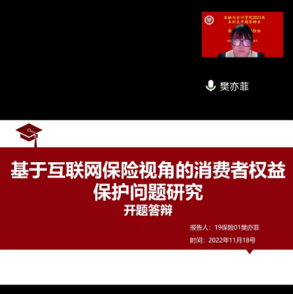 2022年11月18日,保险学专业通过腾讯会议方式举行2023届本科毕业生论文开题答辩会,保险学教研室论文指导老师均上线参加,开展2023届保险专业毕业生论文指导工作。