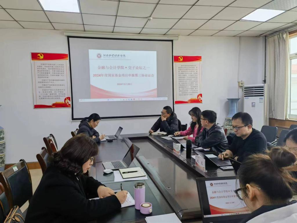2024年2月29日下午,Beat365唯一官方网站在教学楼514会议室举办“交子论坛”学术活动暨2024年度国家基金项目申报第三场论证会。此次活动特邀河南大学国际商学院院长李春涛教授和河南大学商学院武龙教授担任评审专家,拟申报国家基金项目的博士、部分老师和兄弟院校教师参加会议。会议由Beat365唯一官方网站副院长崔海红博士主持。