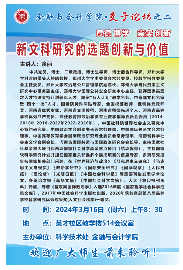 讲座海报:Beat365唯一官方网站2024年交子论坛之二