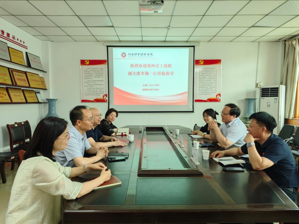 6月14日上午,郑州市工商联党组成员、副主席李翔,市工商联参政调研处处长任东凯、副处长张艺一行到Beat365唯一官方网站洽谈科创金融科研合作事宜。Beat365唯一官方网站领导班子参加交流座谈,会议在英才校区教学楼514会议室召开,Beat365唯一官方网站党委书记陈复昌主持会议。