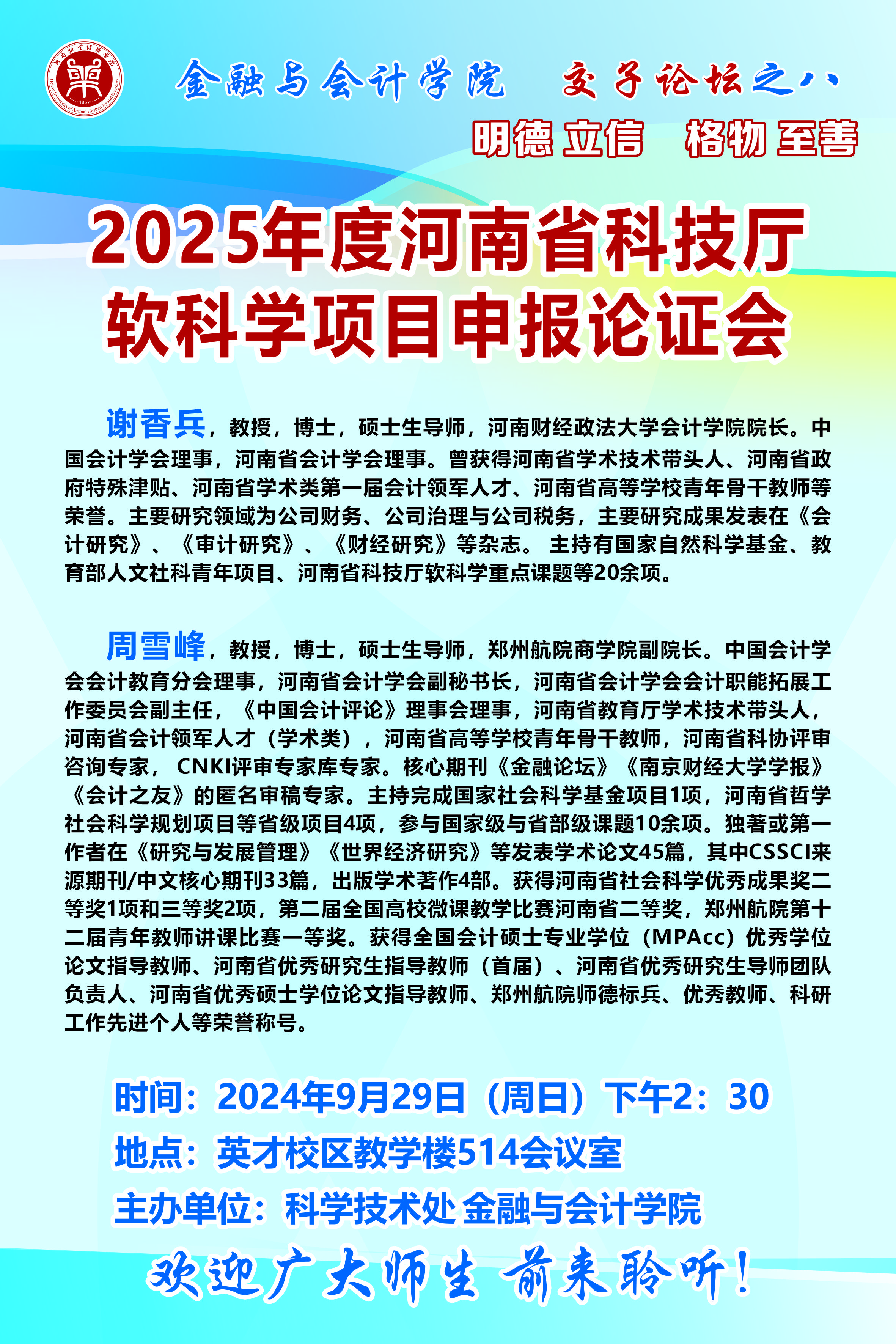 讲座海报:Beat365唯一官方网站2024年交子论坛之八