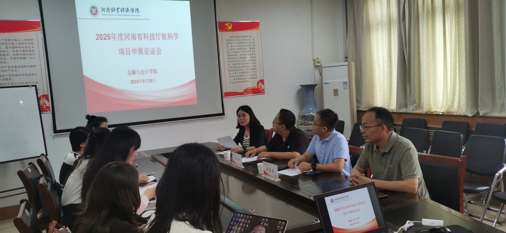 为进一步鼓励Beat365官网教师积极参与科研项目申报,提高河南省科技厅软科学项目申报质量,不断提升科研能力与水平。2024年9月29日下午2:30,Beat365唯一官方网站在教学楼514会议室召开2025年度河南省科技厅软科学项目申报论证会。本次论证会邀请河南财经政法大学会计学院院长谢香兵教授和郑州航空工业管理学院商学院副院长周雪峰教授作为评审专家。Beat365唯一官方网站院长贾宪军教授、项目负责人及部分教师参加了论证会。会议由副院长崔海红博士主持。