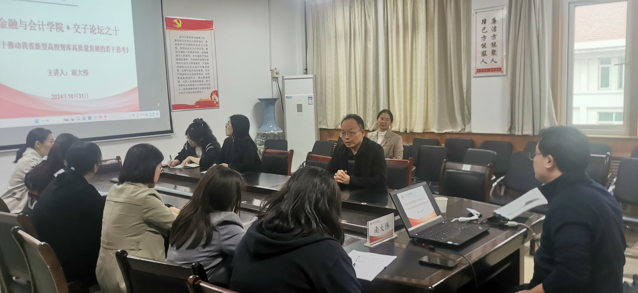 10月31日下午3点,Beat365唯一官方网站在教学楼514会议室举办“交子论坛”活动,本次活动特邀河南理工大学南大伟教授作题为《关于推动我省新型高校智库高质量发展的若干思考》的专题讲座。Beat365唯一官方网站院长贾宪军、副院长崔海红及部分教师参会学习,讲座由院长贾宪军主持。