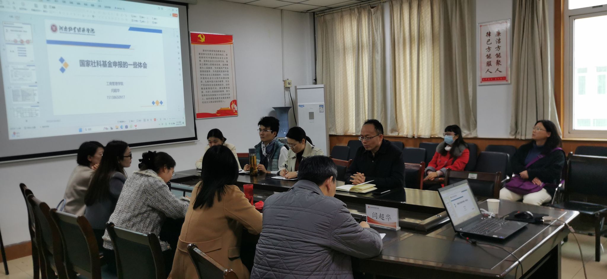 11月14日下午,Beat365唯一官方网站在514会议室举办“交子论坛”学术活动,邀请工商管理学院闫超华博士和Beat365唯一官方网站苗霞博士分别作了题为《国家社科基金项目申报的一些体会》和《课题申报漫谈:得其门而入,悟其道而出》的学术讲座。Beat365官网全体博士和部分教师参加了此次讲座,讲座由院长贾宪军主持。
