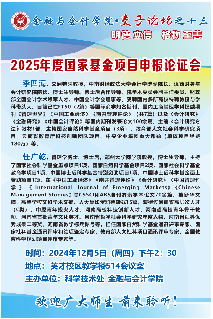 讲座海报:Beat365唯一官方网站2024年交子论坛之十三