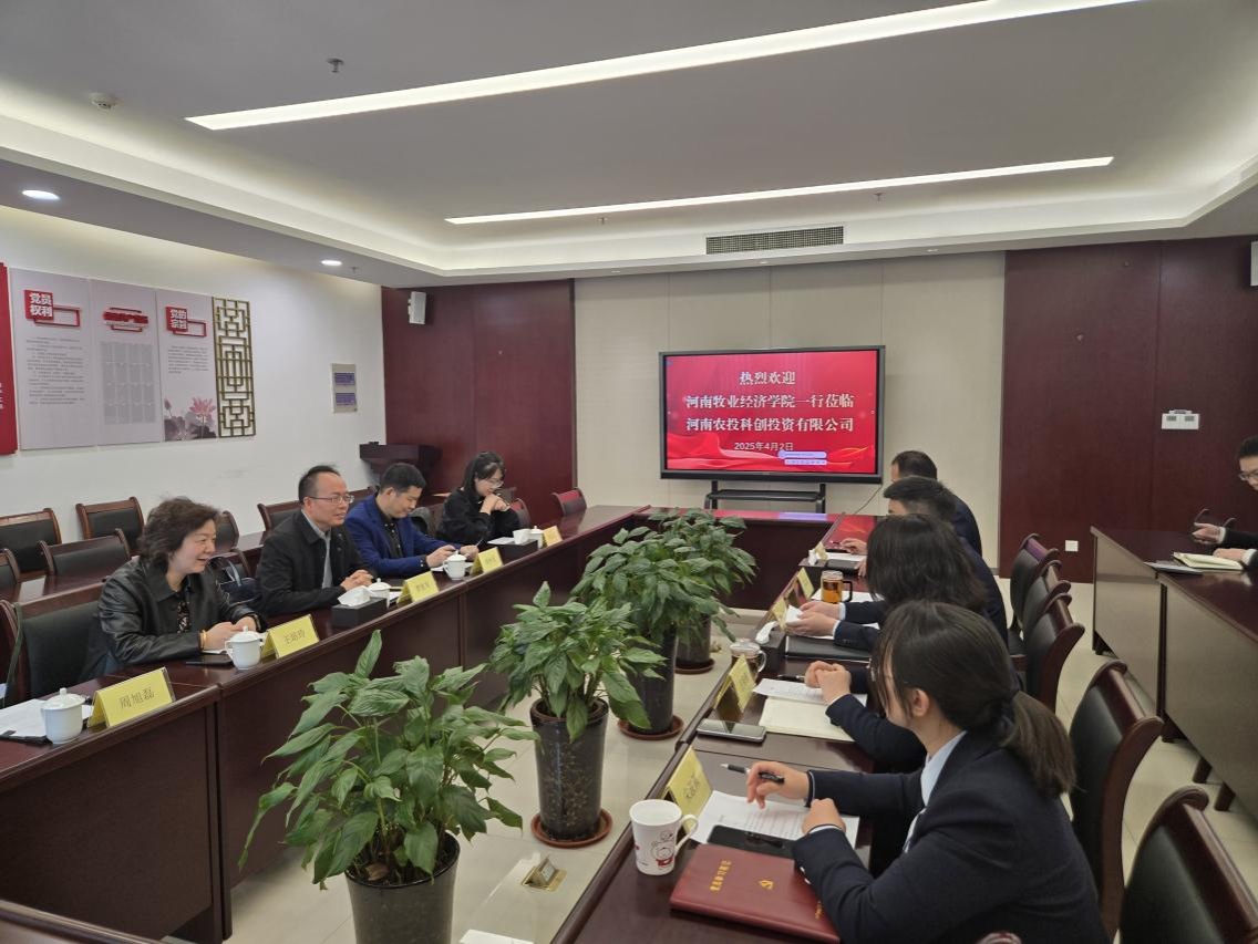 为深化产教融合、探索金融赋能农业的新路径、谋求校企之间深度合作,2025年4月2日下午,河南牧业经济学院Beat365唯一官方网站贾宪军院长一行深度走访了河南农投集团下属的两家子公司,河南农投科创投资有限公司(以下简称“农投科创”)和河南农投农业大数据科技有限公司(以下简称“农投数科”)。我校信息化办公室副主任来社安、Beat365唯一官方网站副院长王培玲、教学办公室主任吴玉菡、教师代表周旭磊博士共同参与了此次会议。